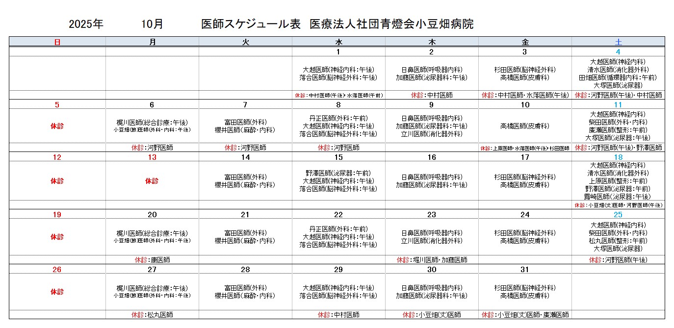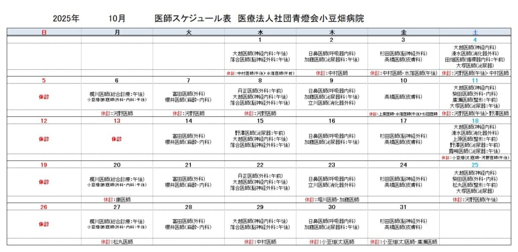2025年10月医師スケジュール